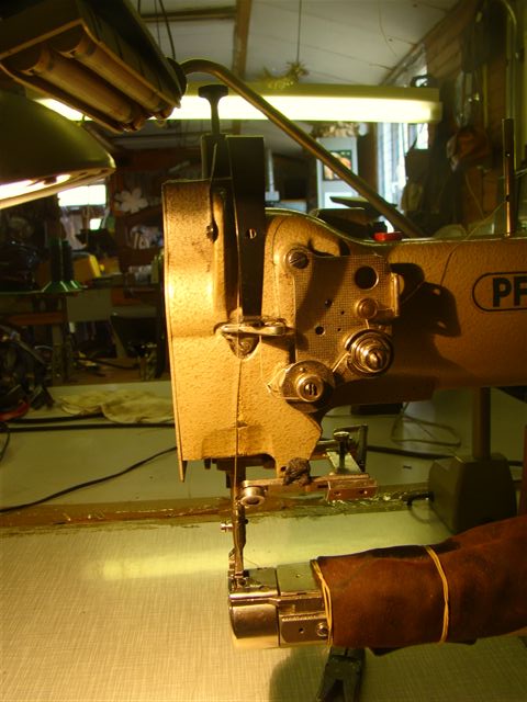 Zware draadstikmachine met 3-voudig transport om een regelmatige steek te maken. |